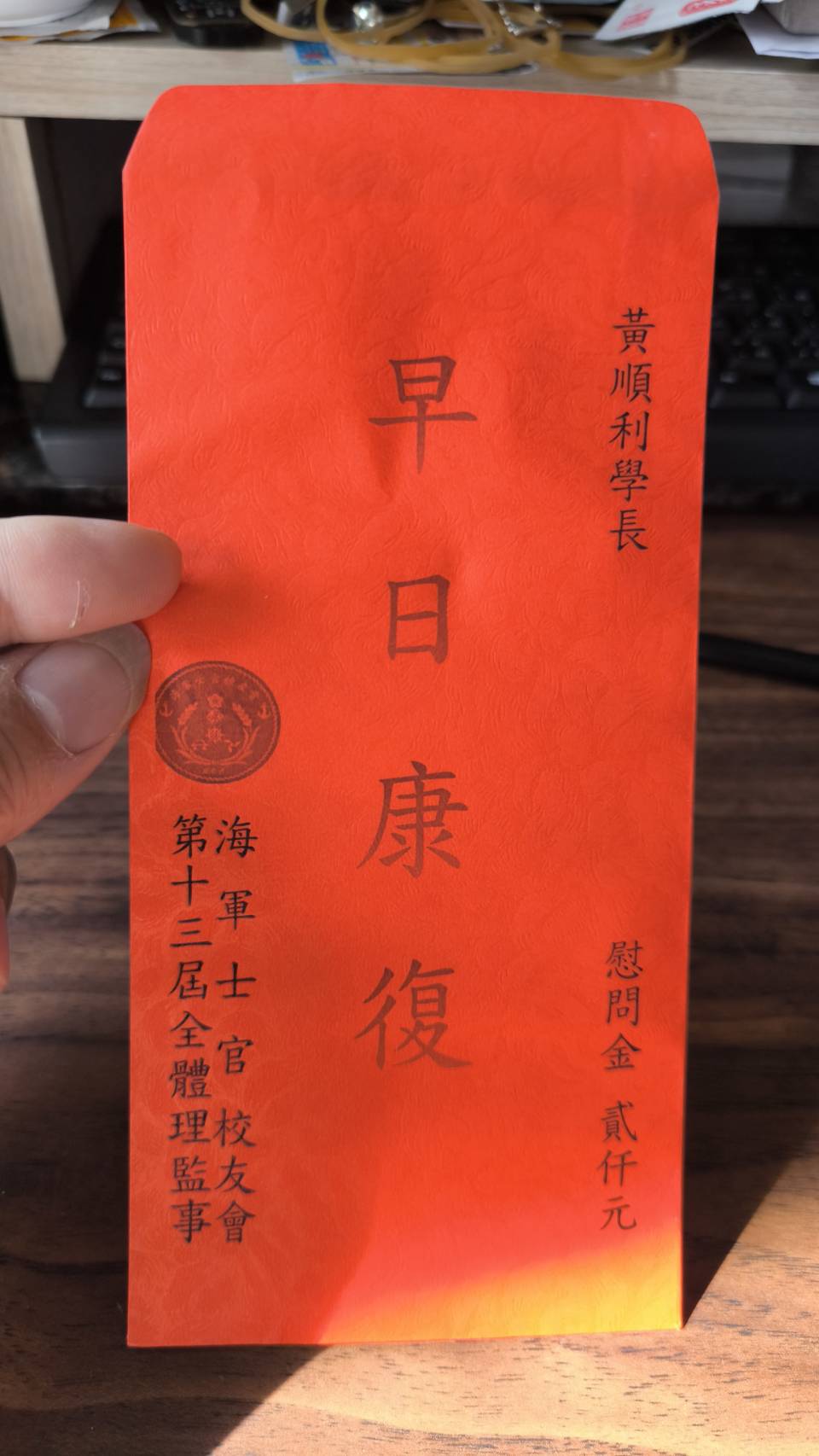 1140705北區總幹事聞林倡代表校友前往永和耕莘醫院探視黃順利學長(聯10)因急性盲腸炎破裂開刀住院,校友會贈與慰問金,黃學長慰問金回捐校友會,黃學長現術後抗生素治療恢復中