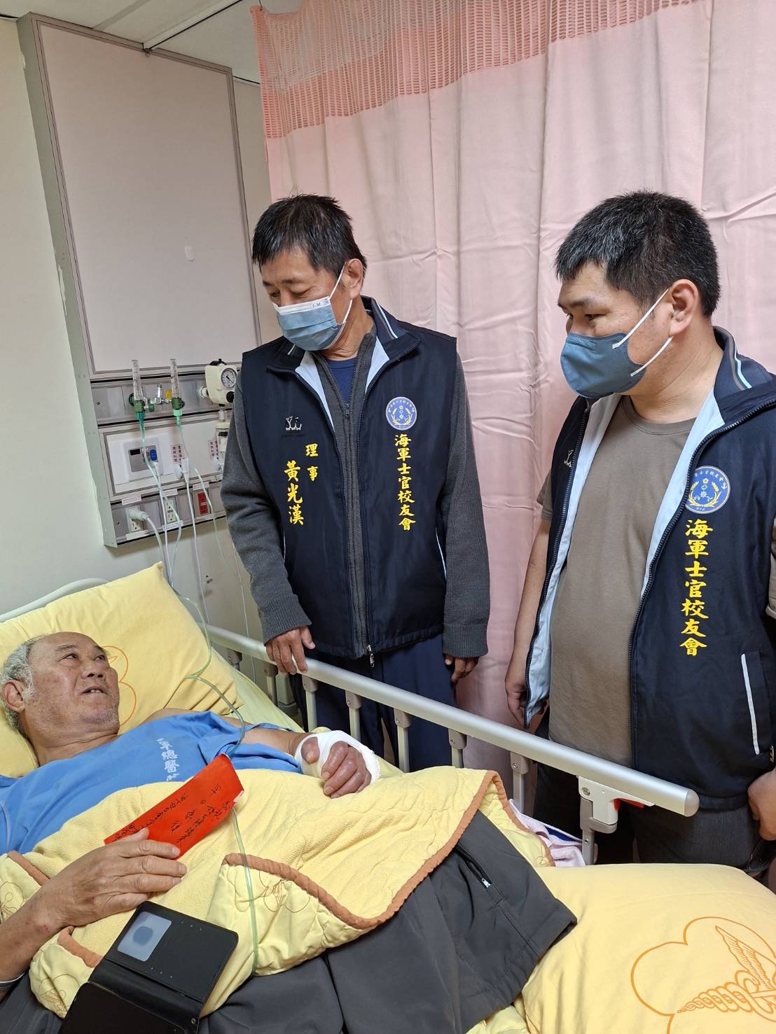 1150409副理事長蔡金城、理事黃光漢及會員劉俊銘代表校友會前往三總基隆正榮分院關懷探陳瑞東(聯5)學長因傷住院